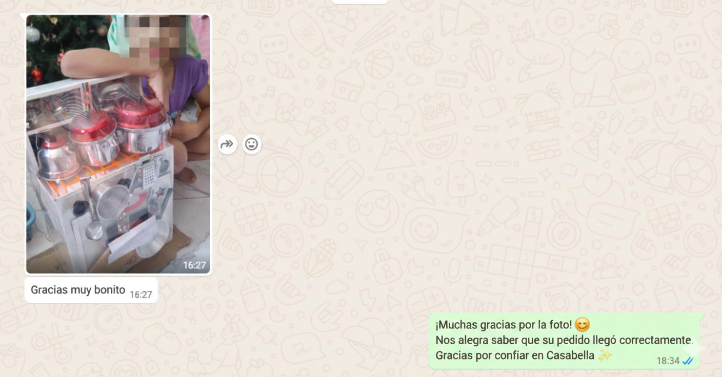 “Me llegó la cocinita muy linda, a mi hija le encantó.”